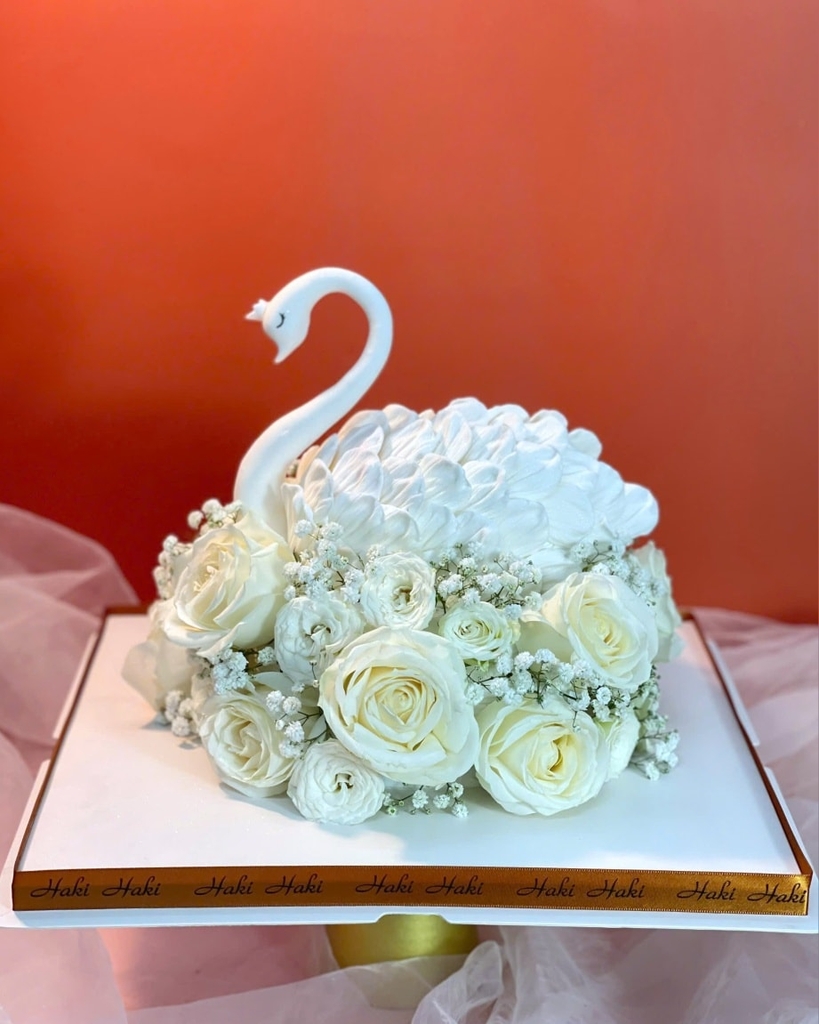 Bánh kem Thiên Nga kết hợp hoa tươi tặng vợ, tặng bạn