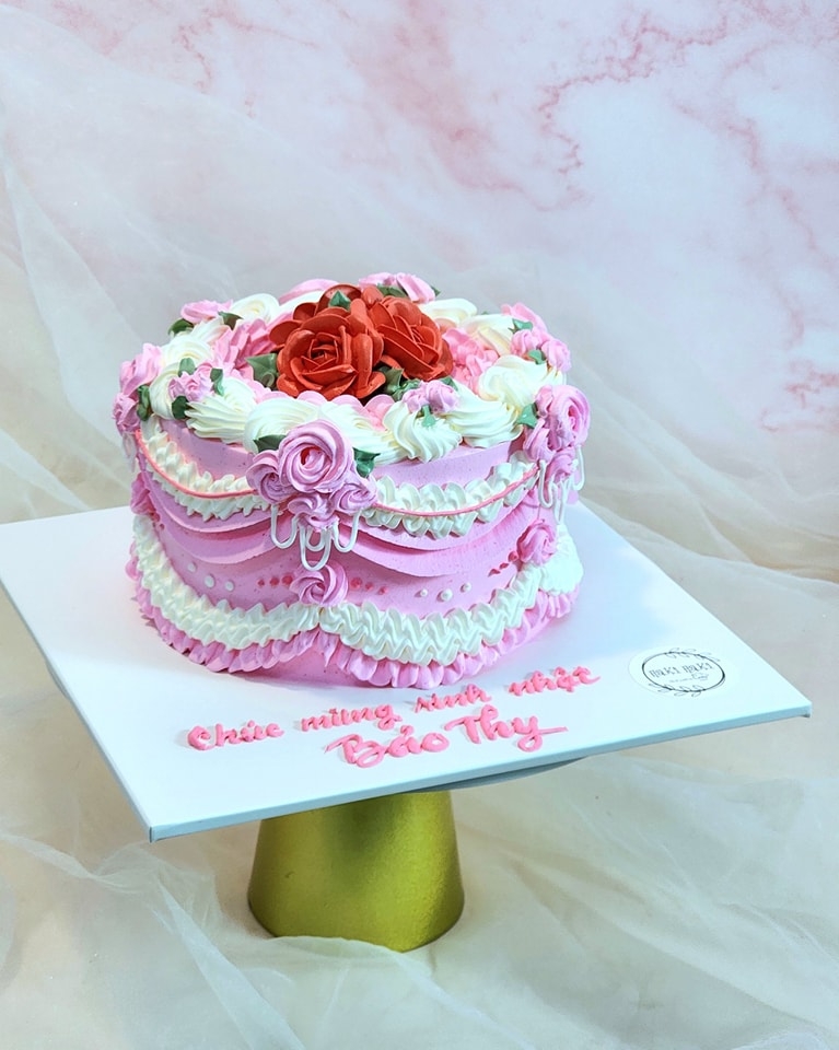 Bánh sinh nhật style vintage và hoa bắt kem