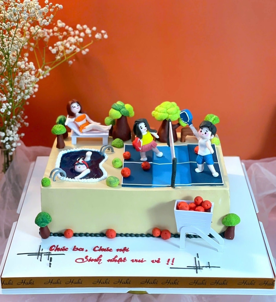 Bánh sinh nhật tạo hình gia đình đang chơi thể thao
