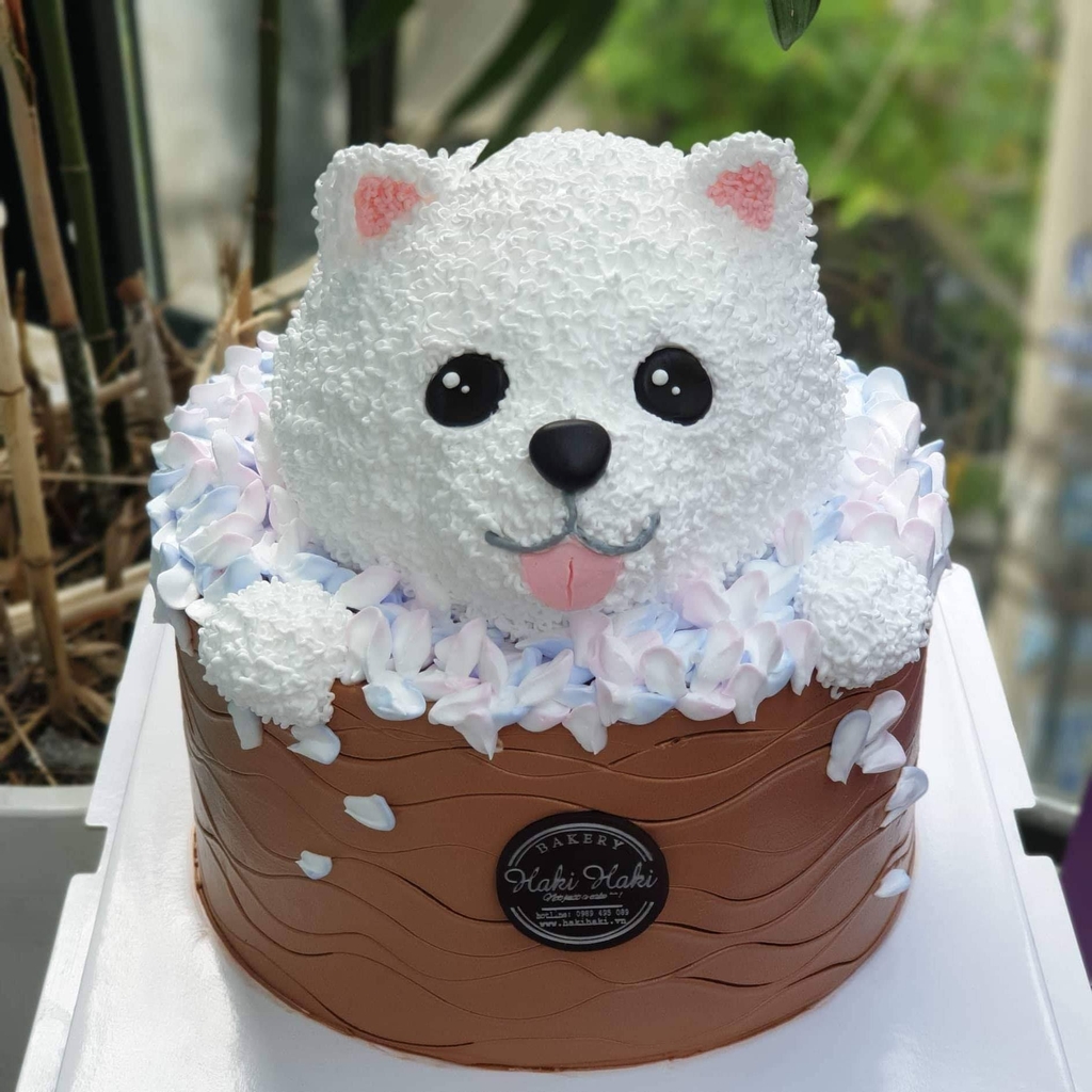 Bánh sinh nhật trang trí cho bé tuổi tuất, bánh tạo hình cún, tạo hình chó Bánh được trang trí theo yêu cầu của khách hàng Chi tiết và màu sắc có t...