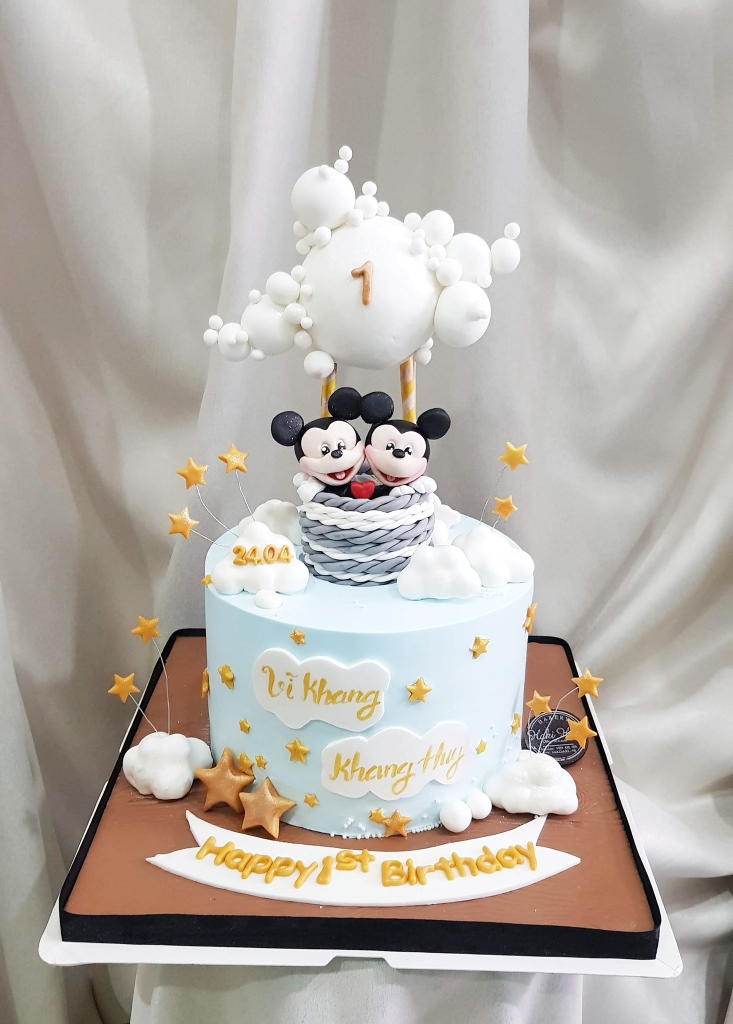 Bánh kem hiện đại cho 2 bé song sinh với tạo hình Mickey