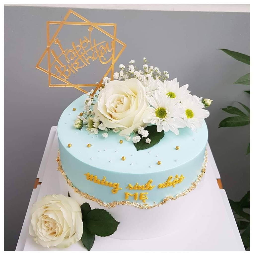Bánh sinh nhật trang trí hoa tươi tặng vợ, người yêu