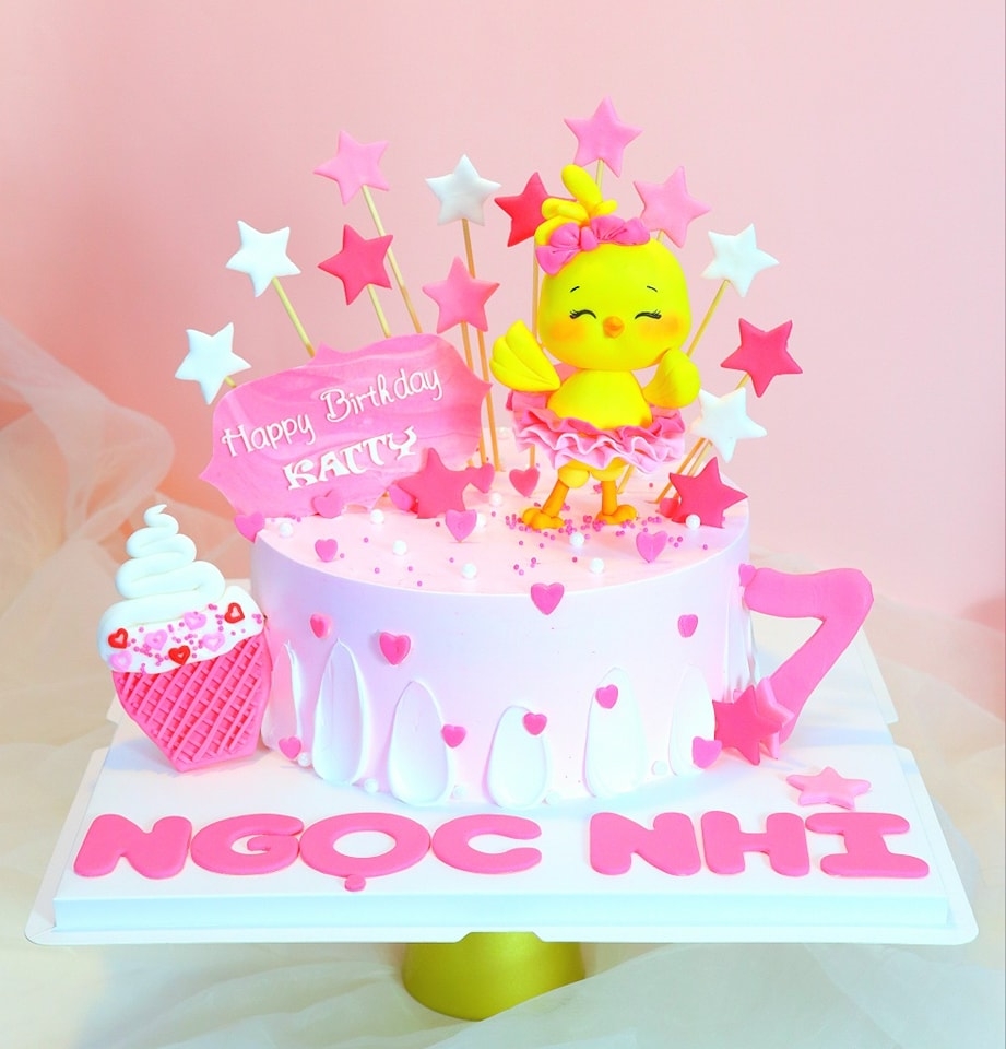 Bánh sinh nhật tạo hinh gà cho bé gái  Bánh được trang trí theo yêu cầu của khách hàng Chi tiết và màu sắc có thể thay đổi theo yêu cầu của qu...