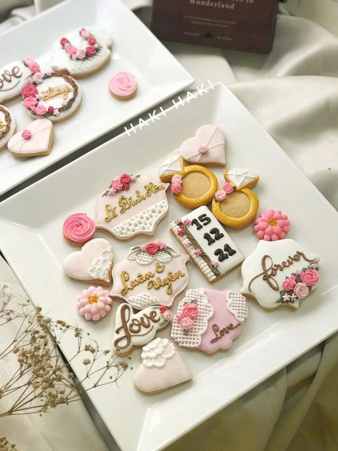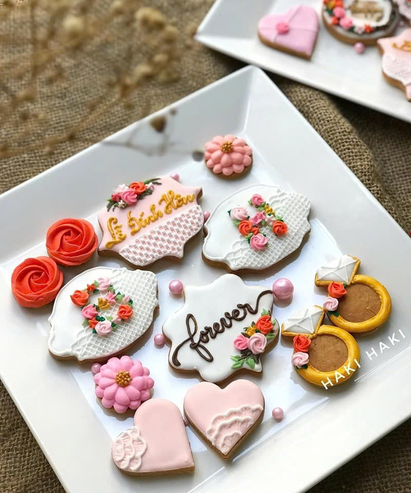 Sugar cookie không chỉ đơn giản là một chiếc bánh quy, mà còn là một thông điệp yêu thương được truyền tải qua từng chi tiết. Với lớp icing mịn màng, được trang trí tỉ mỉ theo phong cách sang trọng hoặc dễ thương, những chiếc bánh này có thể mang hình ảnh cặp đôi, ngày cưới hoặc những lời cảm ơn đầy ý nghĩa.