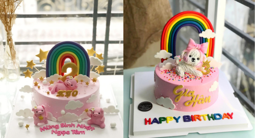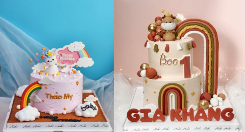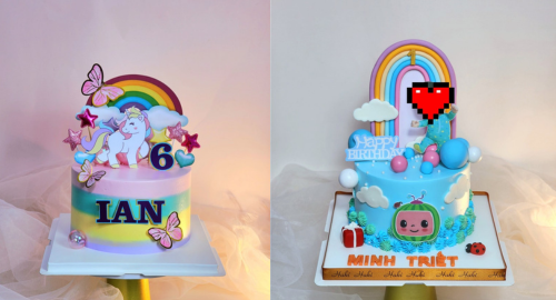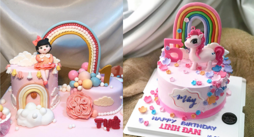 Trang trí sáng tạo: Bánh sinh nhật cầu vồng thường được trang trí với các hình ảnh và mẫu vật liên quan đến cầu vồng như hình trái tim, ngôi sao, hoa văn cầu vồng hoặc kết hợp với các nhân vật mà bé thích... tạo nên một diện mạo độc đáo và vui nhộn.