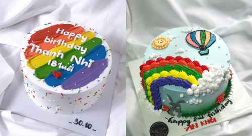 Màu sắc đa dạng: Bánh sinh nhật trang trí cầu vồng thường được trang trí với một loạt các màu sắc tươi sáng, bắt mắt giống như cầu vồng thực sự. Các màu cơ bản như đỏ, cam, vàng, xanh lá cây, xanh dương và tím thường được sử dụng để tái hiện lại vẻ đẹp của cầu vồng.
